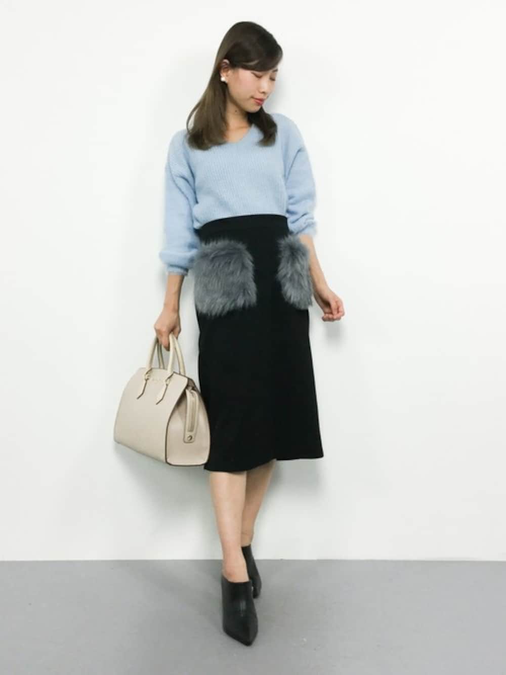 オトナフェミニンコーデ◎ もちもちした生地のニットは柔らかく 着心地ばっちり(^_^)☆ タイトスカートは ポケットのファーがポイントです♪