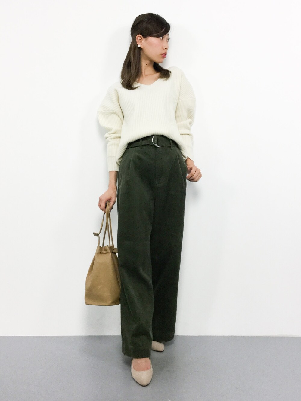 オトナラフコーデ◎ ゆったりシルエットのニットは ボトムスを選ばずに着られるので 合わせやすいですよ★ コーデュロイ素材のワイドパンツは穿くだけで 季節感のでるアイテムです( ˆoˆ )/ ゆとりのあるシルエットで穿きやすいです♩
