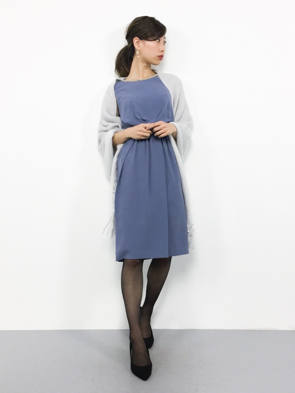 KIIのドレス「【WEB限定】首元ビジュー梨地パーティードレス」を使ったコーディネート