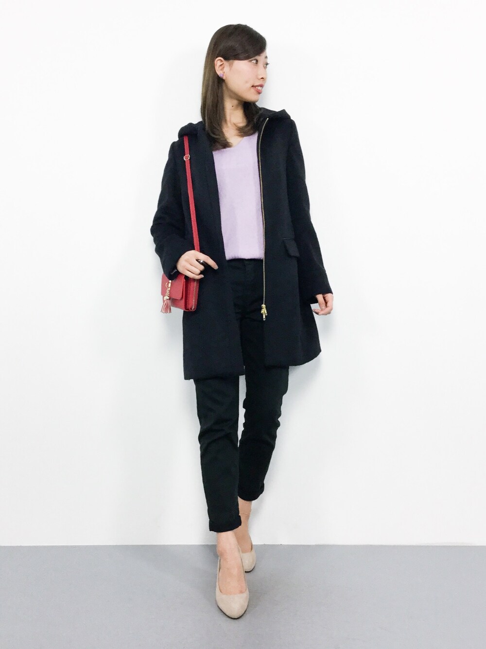 オトナフェミニンコーデ◎ コートは使いやすい形でどんなコーデにも 合わせやすいです♪( ´▽`) パンツは柔らかな生地で伸縮性ばっちり♩ オススメの1本です(^_^)☆