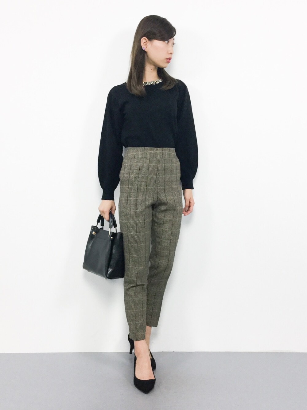オトナカジュアルコーデ◎ オンオフに着回しが効くビジューニットは 様々なシーンで活躍間違いなし♪ ハイウエストのパンツなので スタイルアップ効果ばっちり♩ スッキリシルエットで穿きやすいです(^_^)☆