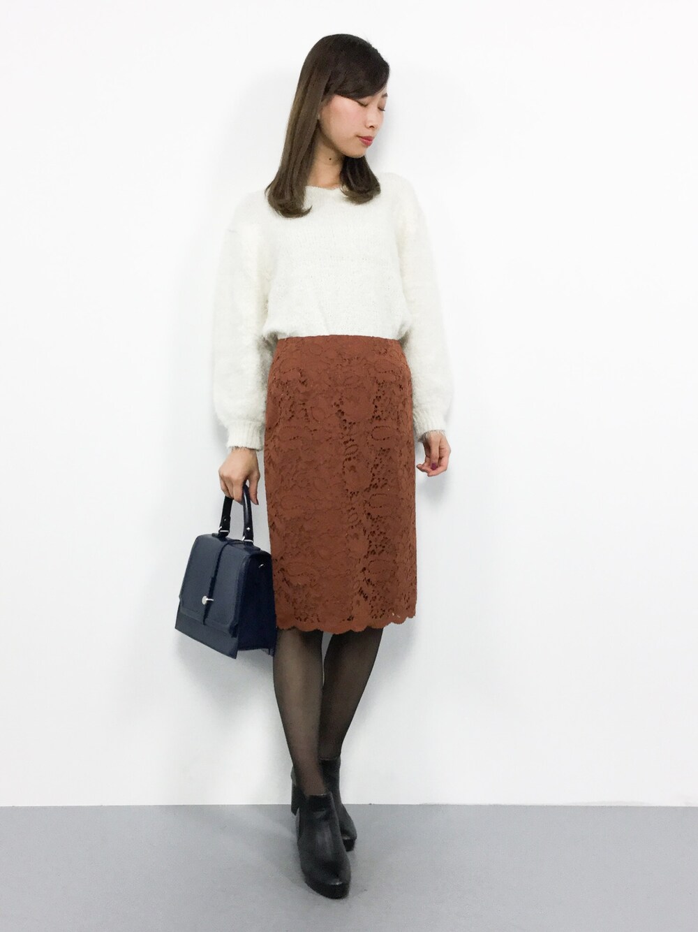 カジュアルフェミニンコーデ◎ ふんわり生地のニットは 着心地満点(^_^)☆ スカートはオンオフに着回せて 幅広いシーズン使える優秀アイテム♪