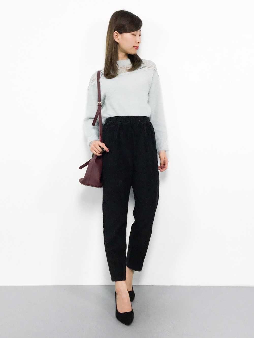 オトナカジュアルコーデ◎ ふんわり生地のニットは 着心地満点(^_^)☆ レースがフェミニンです(´∀`*) コーデュロイ素材のパンツは穿くだけで 季節感のでるアイテムです( ˆoˆ )/ ゆとりのあるシルエットで穿きやすいです♩
