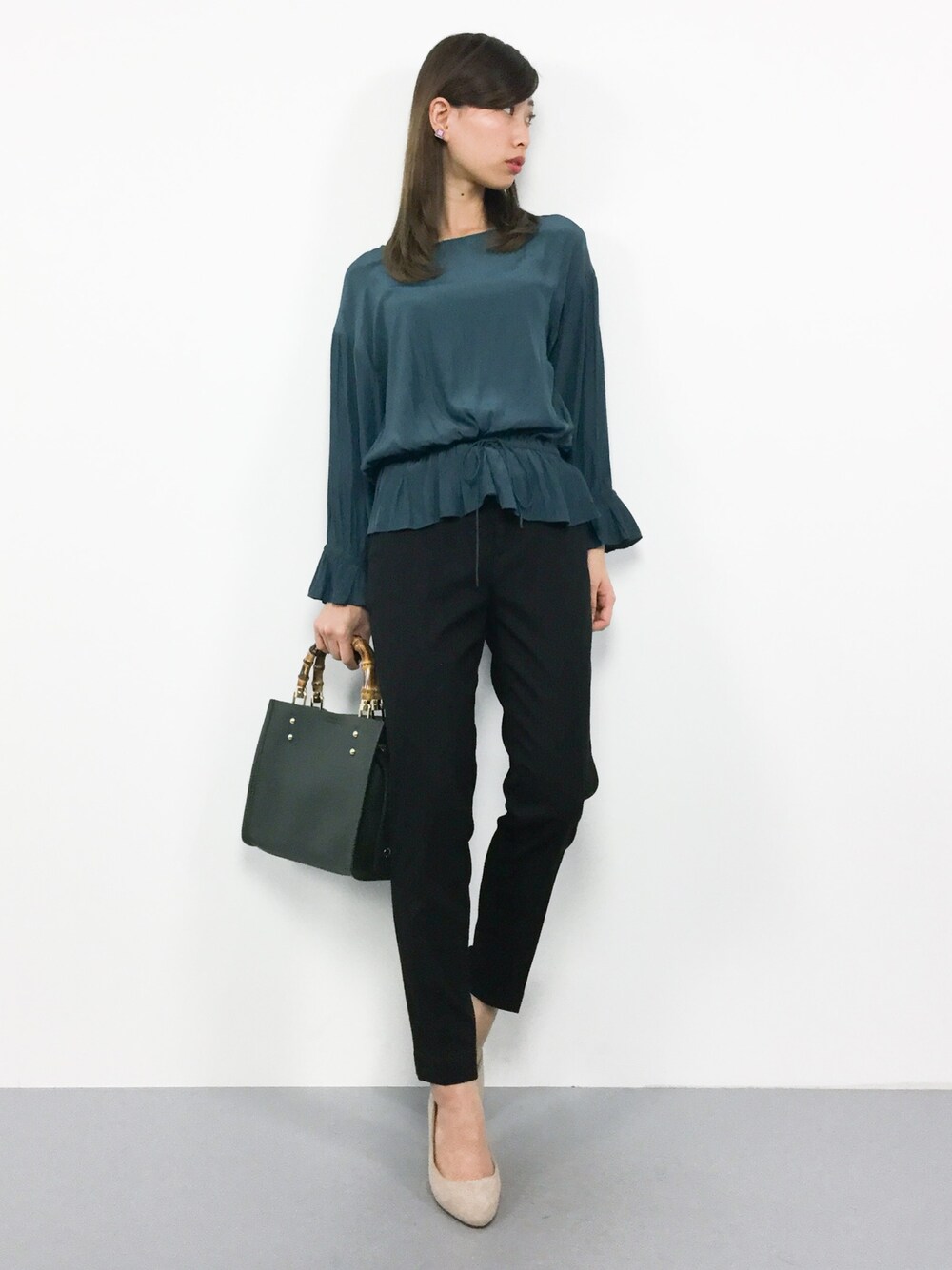 オトナシンプルコーデ◎ ペプラムデザインで女性らしい シルエットに(^_^)☆ しっかりウエストマークができ、スタイルアップ♩ パンツはすそに向かって細くなっているので きれいなシルエットで穿いていただけます♩