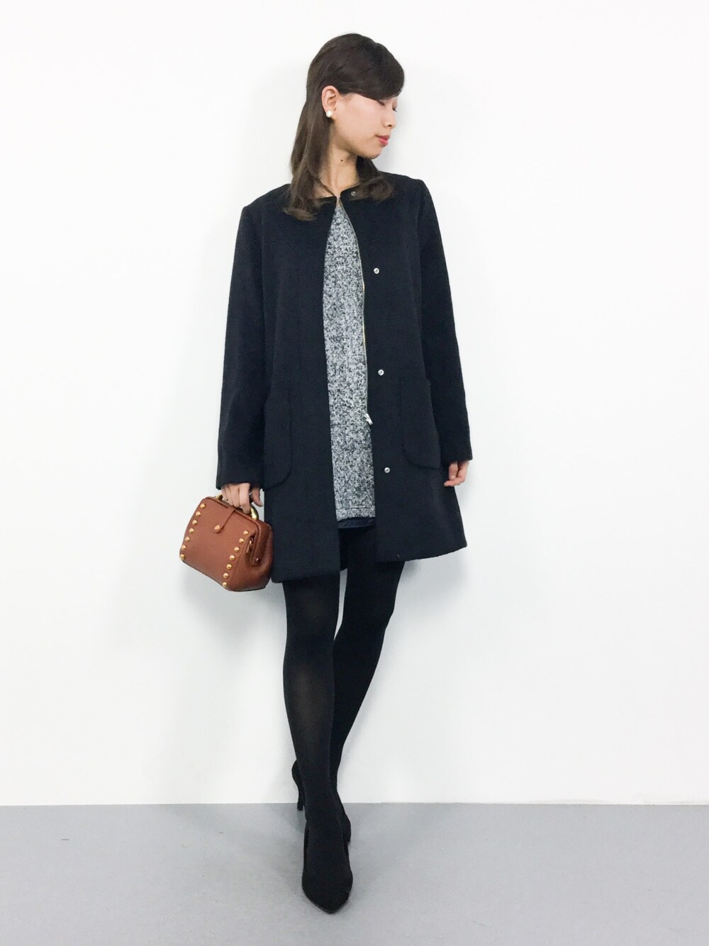 大人シンプルコーデ◎ 女性らしいシルエットのコートで フェミニンな印象に(^_^)