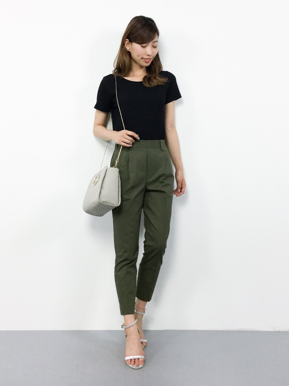 KIIのTシャツ/カットソー「【WEB限定】【手洗い可】クルーネックリブカットソー/テレコカットソー/ボーダー/5分袖/半袖/白/黒/ネイビー/カラー」を使ったコーディネート
