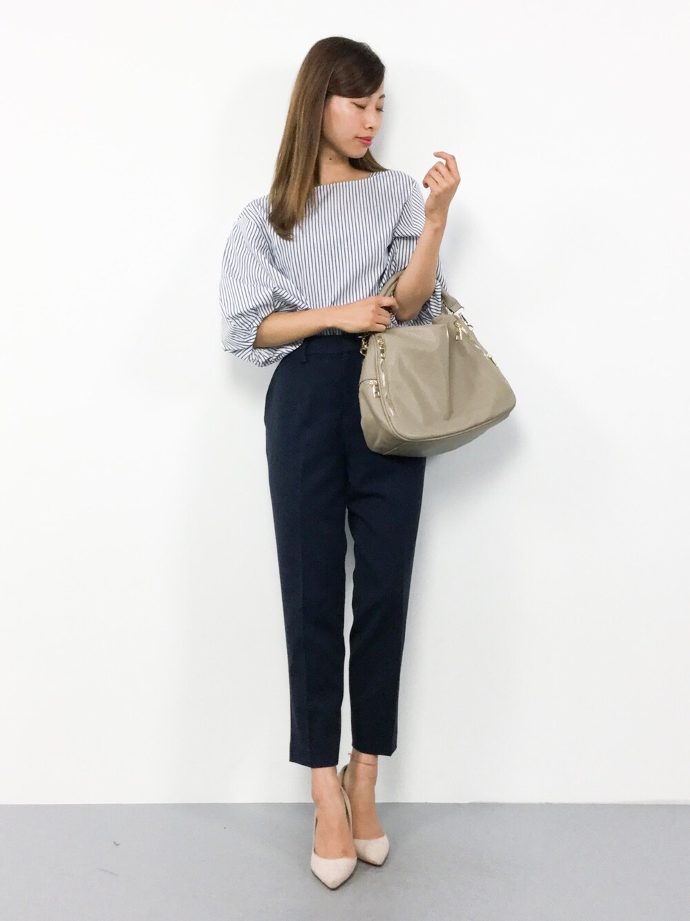 KIIのシャツ/ブラウス「【Domani4月号掲載】Domani × Demi-Luxe BEAMS / ボリュームスリーブ ストライププルオーバー」を使ったコーディネート