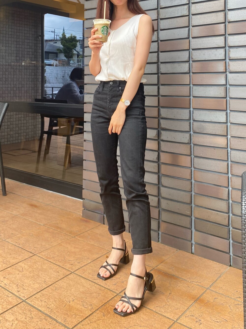 スタバのJIMOTOフラペ、 ほうじ茶を頂きました☕︎🍂 もも、飲みたかったなぁ〜 なかなか着ないVネック、 やっぱり似合わない気がしました(笑)