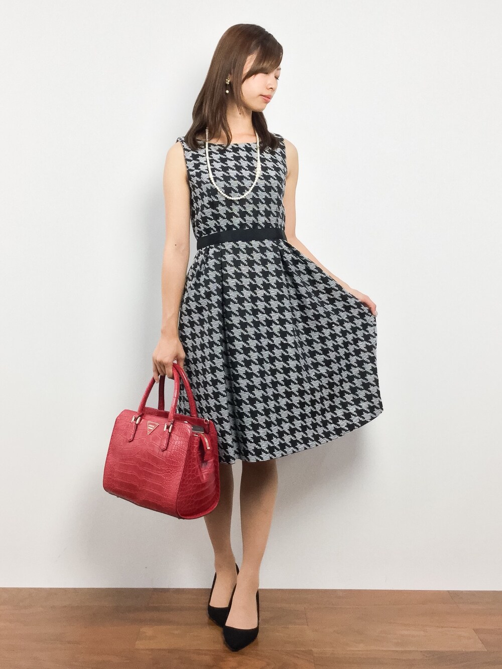 千鳥柄ワンピースコーデ