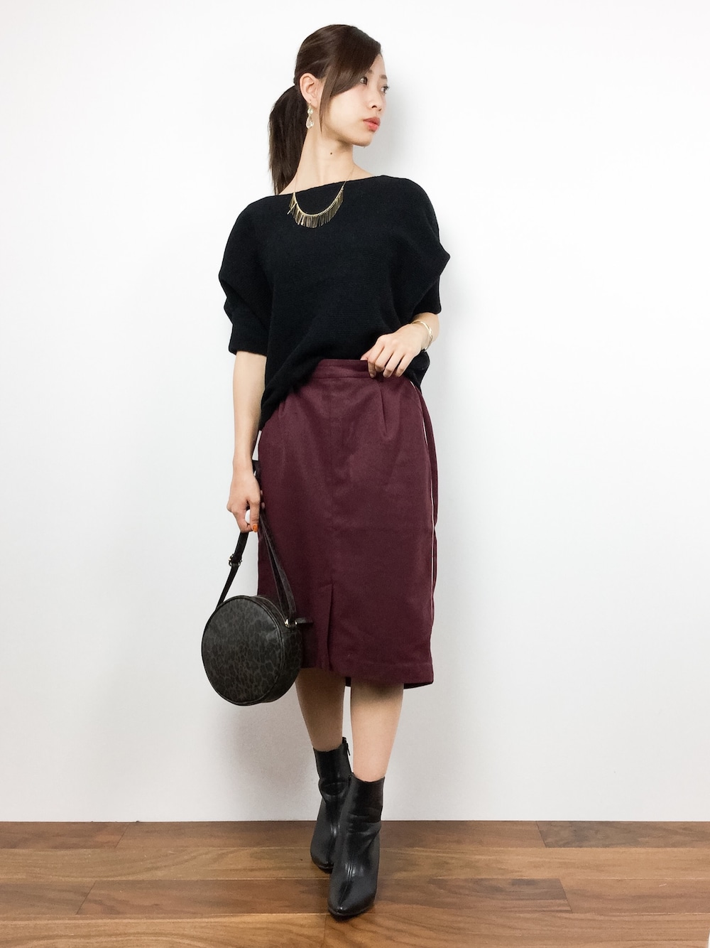 ボリュームニットコーデ