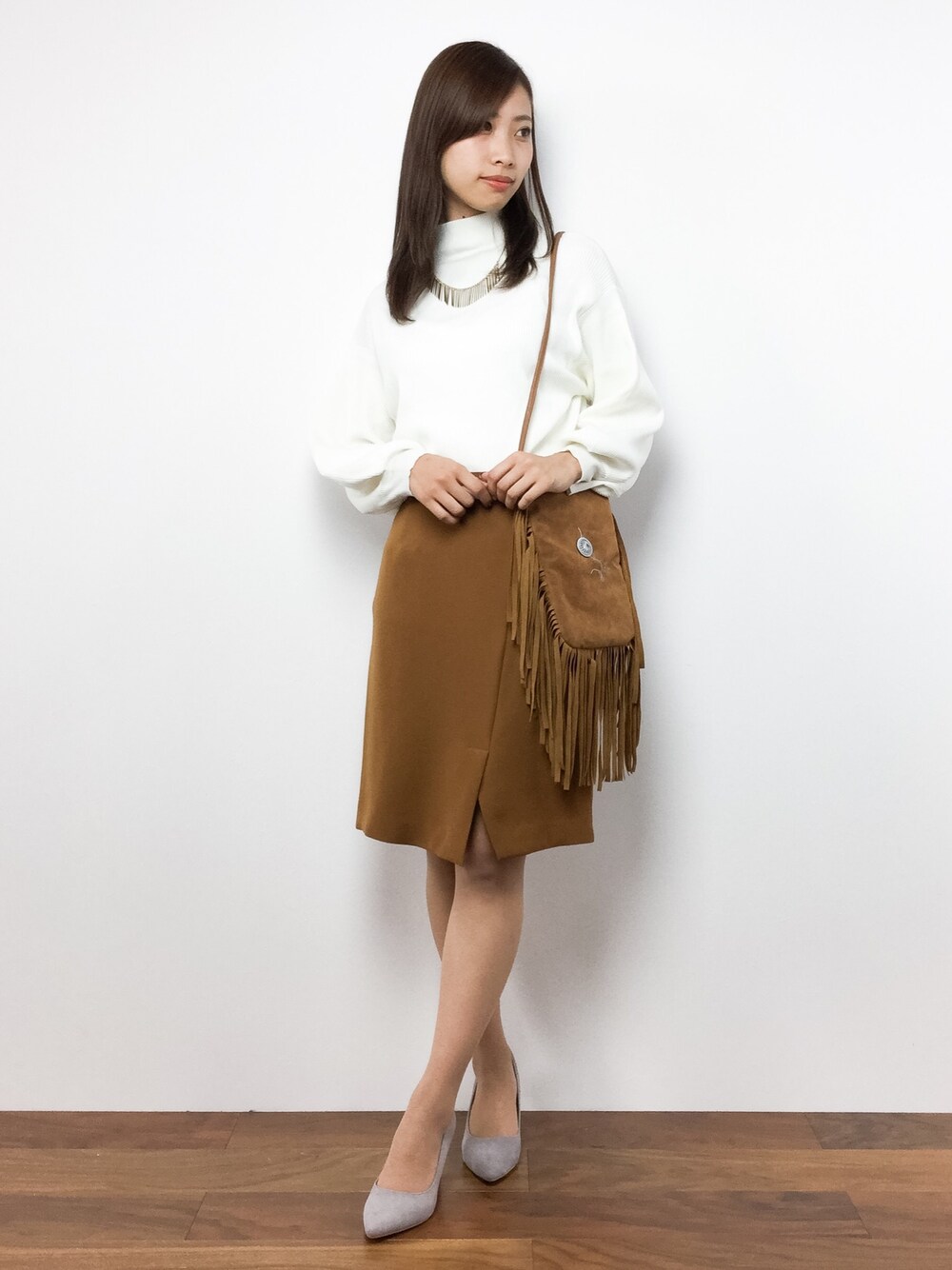 キャメルスカートコーデ