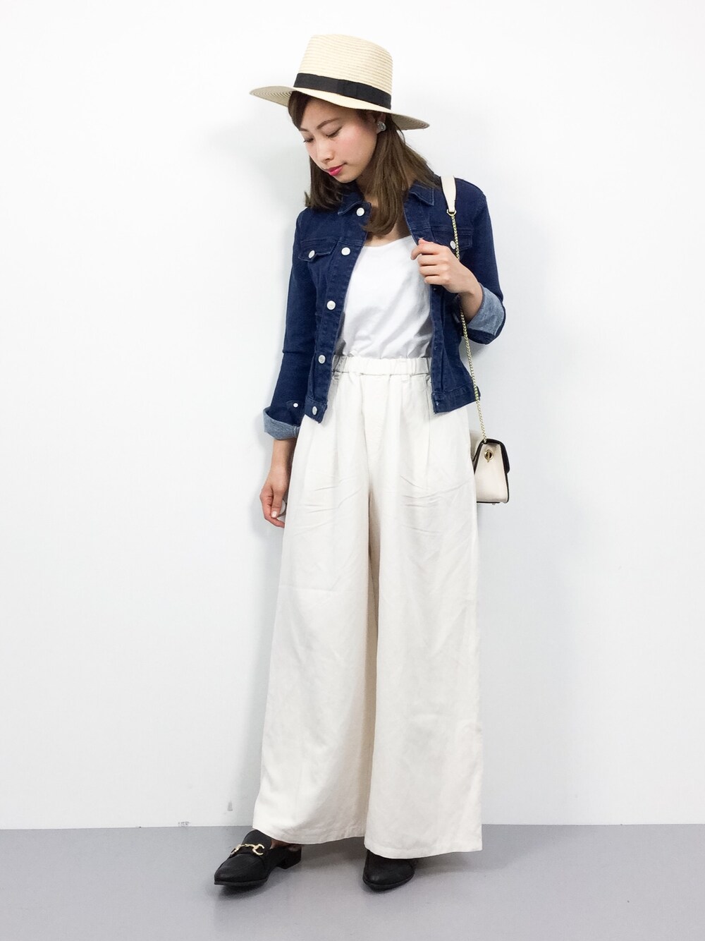 ゆったりラフコーデに 伸縮性のある裏起毛の デニムジャケットをON♪ 春先の肌寒い日も裏起毛の ジャケットで防寒しながら しっかりオシャレできます( ´∀`)