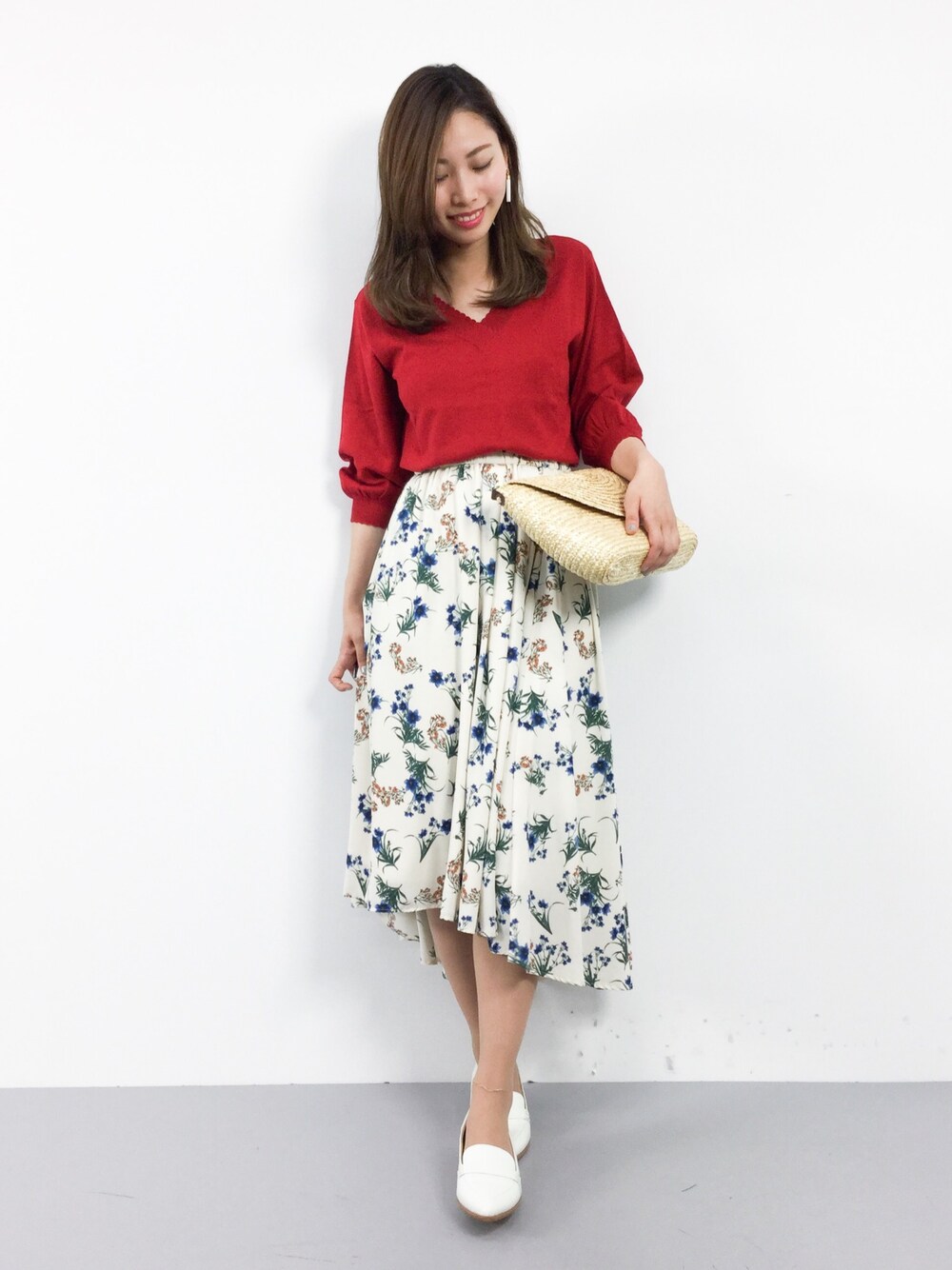 赤ニット×花柄スカートで カジュアルかつフェミニンな オトナデートコーデです( ´∀`)♪