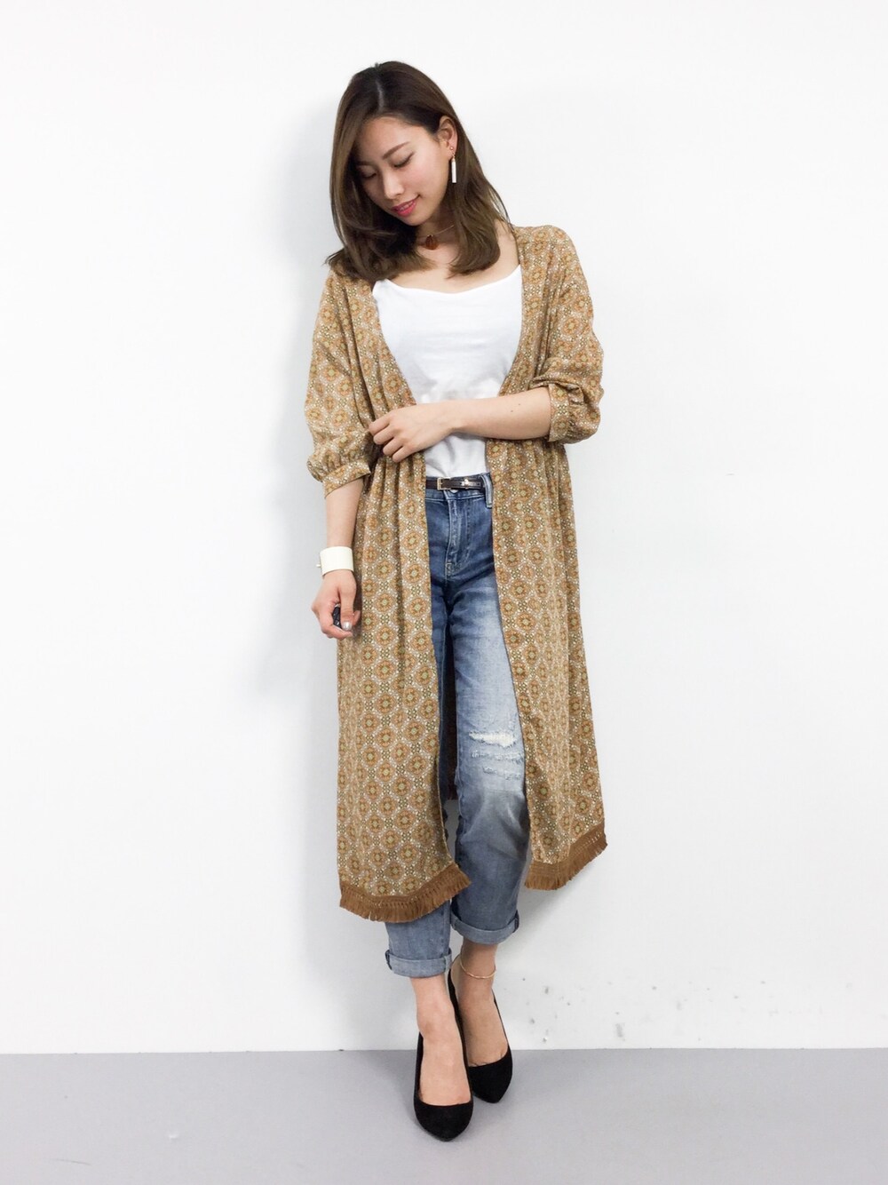 柄物ガウンは一枚羽織るだけで 今年っぽいコーデに♪ 一枚あると重宝する アイテム間違いなしです( ´∀`)‼︎
