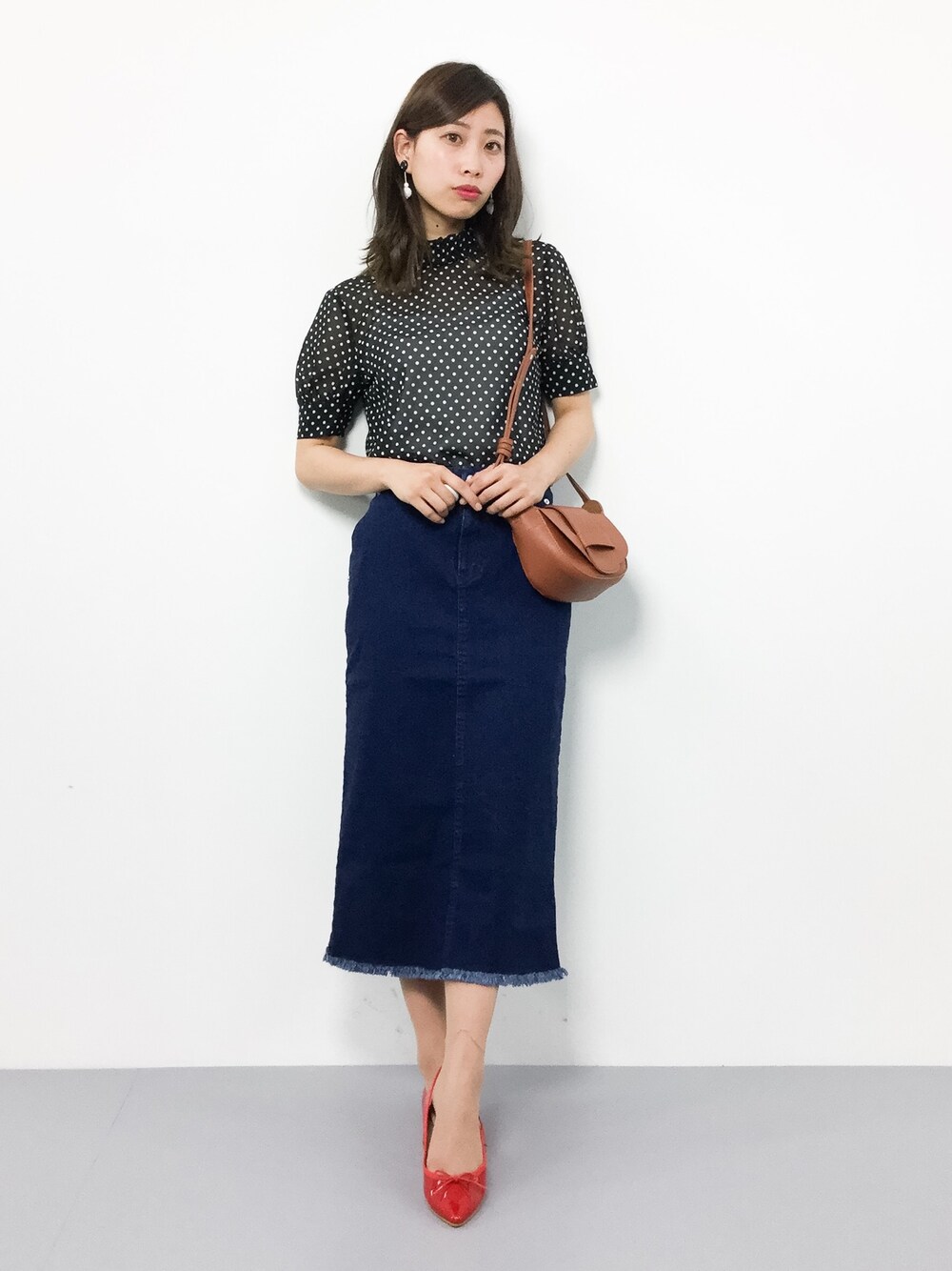 KIIのシャツ/ブラウス「ドットレトロブラウス(半袖)」を使ったコーディネート