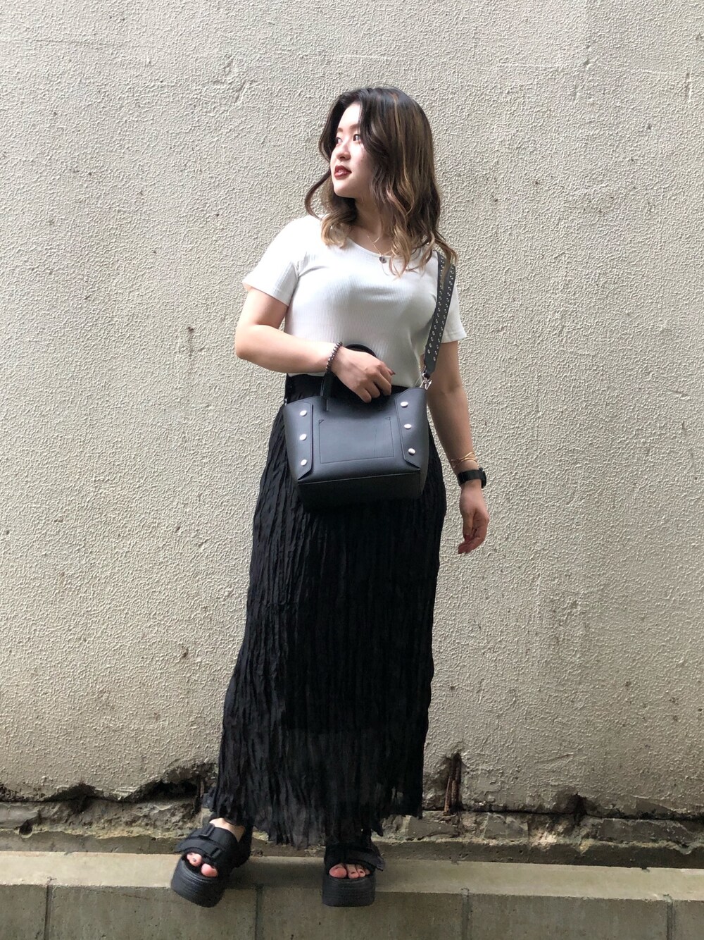 トレンドのワッシャースカート! ちょっとタイトめなシルエットがシワ加工をより綺麗に見せてくれます!