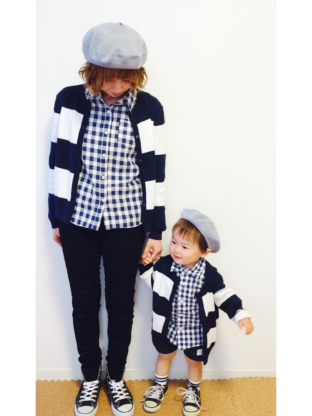ユニクロGirlの太ボーダーカーデでリンクコーデ❤️