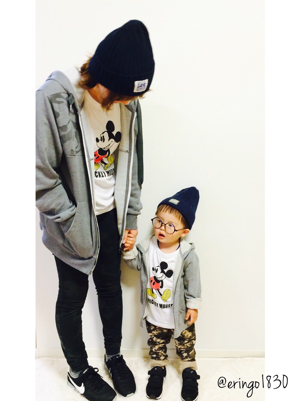 オソロのナイキを買ったのでルンルン❤︎ 迷彩パンツは二人ともユニクロなんだけど私のは迷彩見えにくいですね(´-д-`)