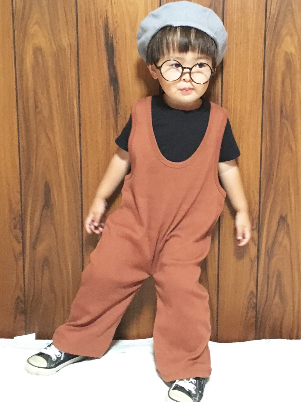 🌝🌰🌾🍁 秋色が気になります✨ * とーじのサロペはなんとユニクロのレディースタンクトップ‼️ しかも500円‼️笑 ずっとオソロ用にとーじにテラコッタサロペ探してたけどなくて… もうリメイクしてやろうと思ってたんだけど、まさかのタンクトップの下の方チョキチョキして縫ったら、いい感じのサロペになりました✨ ちなみにサイズはL🙃🙌💘
