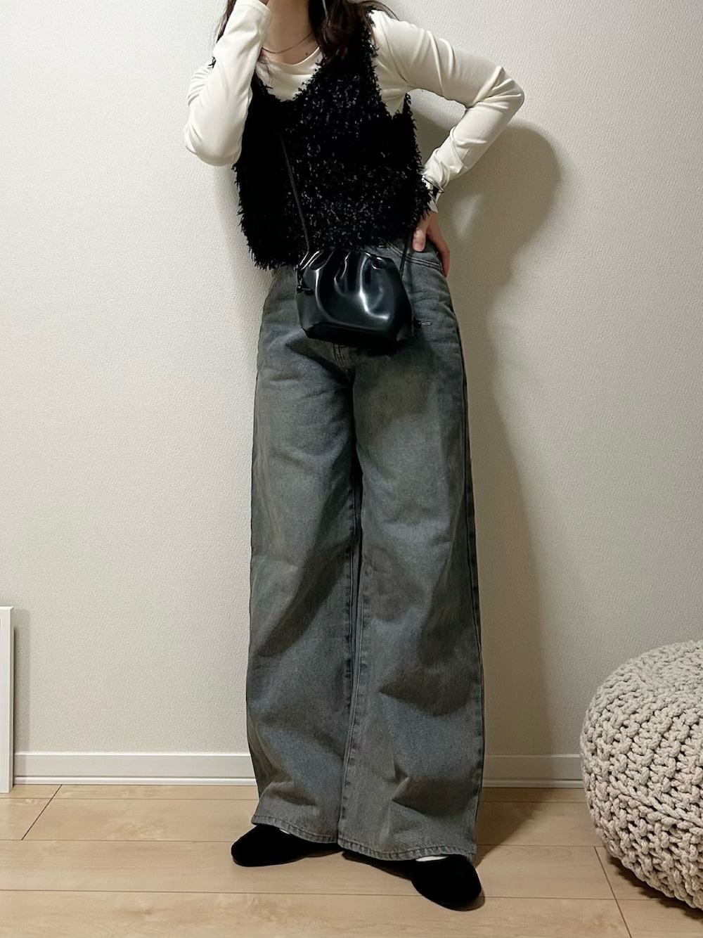 だぶるのベスト「【丈が選べる】前後2wayフリンジベスト」を使ったコーディネート