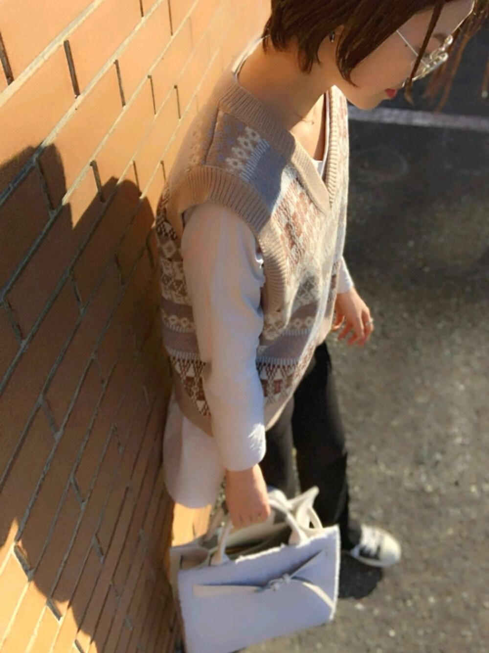 aaaaya(OSYAREVO)のベスト「ノルディック柄 ニットベスト」を使ったコーディネート