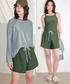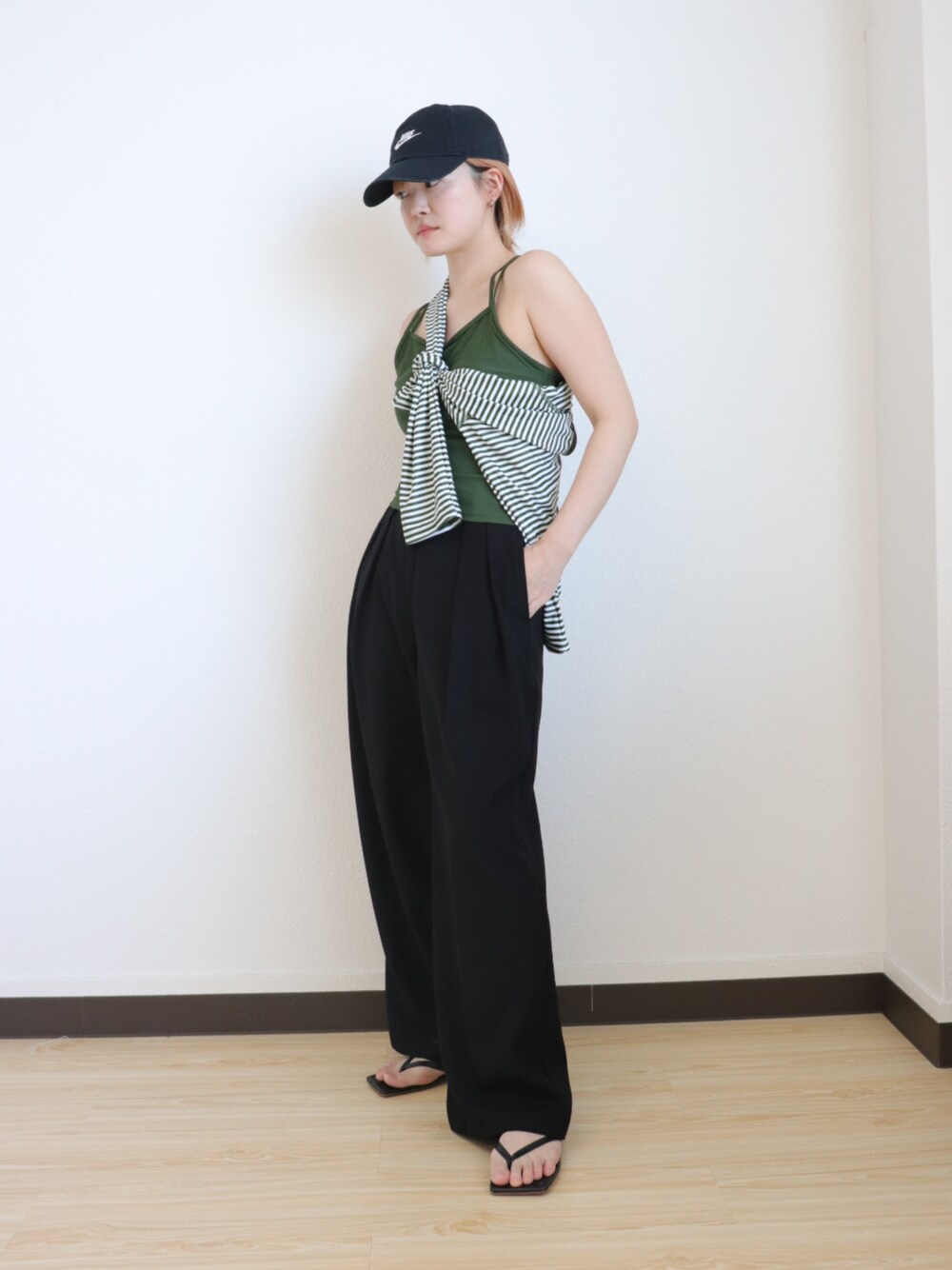 ちょっとした水遊びやフェスなどにいいかも! 楽に着られるキャミソール水着◎ ラッシュガードは袖を通さず、肩からかけて紫外線対策☆