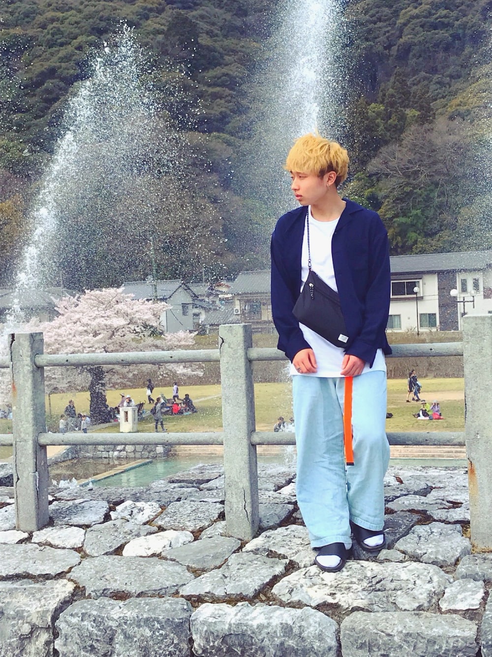 アクセントにオレンジのガチャベルトをいれてサンダルで抜け感をだしました!!