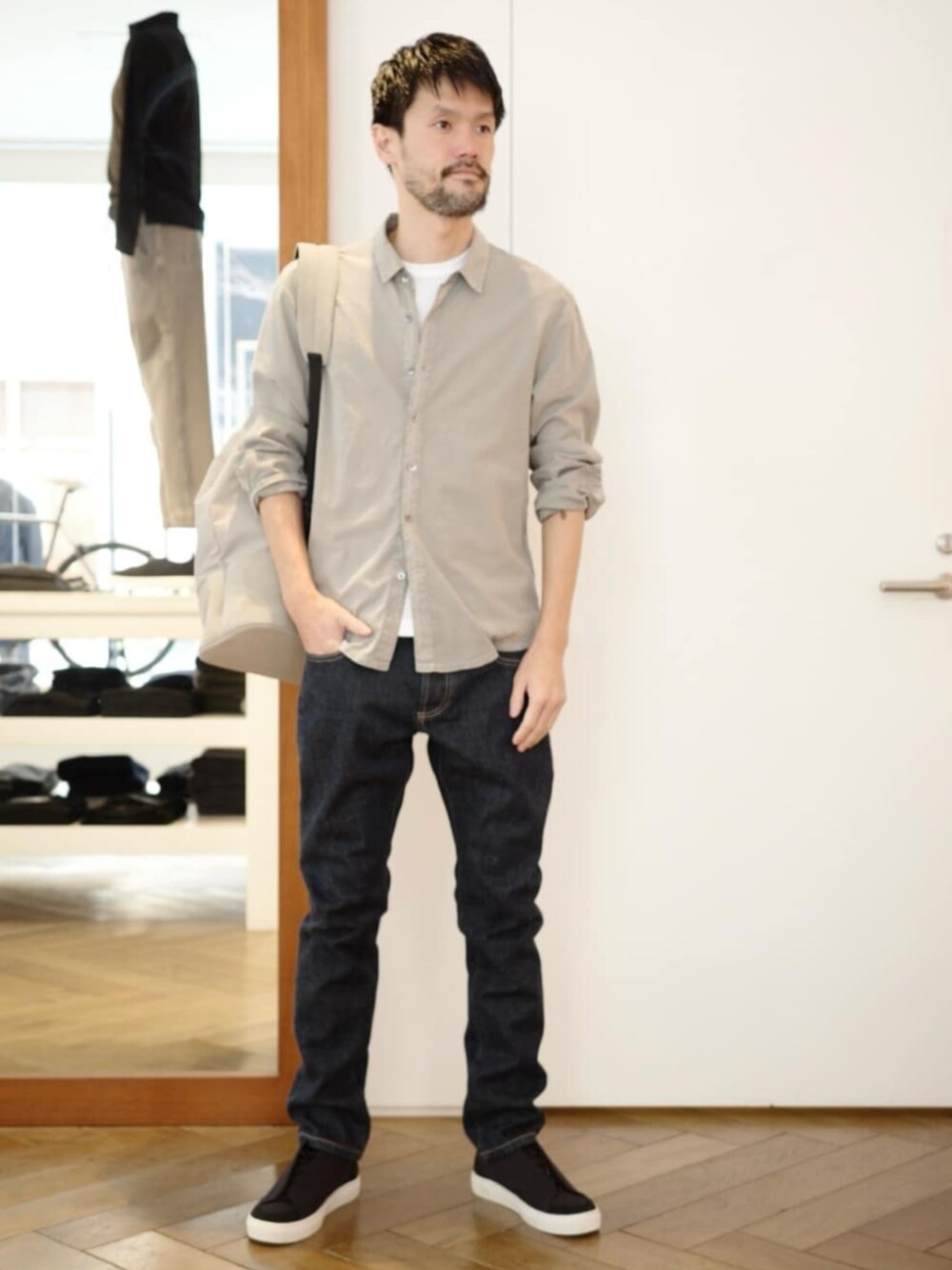 〈JAMES PERSE〉定番コットンローンシャツ。 リラックス感ありながら色褪せた風合いが魅力。