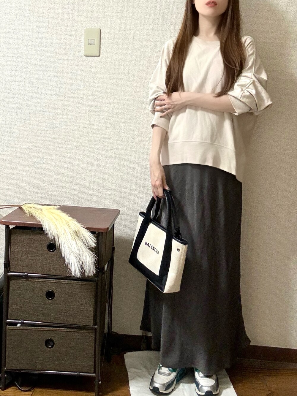 風が冷たい⛄️ 風邪ひかないように気をつけないとー ○tops:SLOBE IENA くすんだベージュが可愛い🫶 大きすぎずショート丈すぎないからラフコーデに◎ ○skirt:LOWRYS FARM 本当に万能アイテム! どんなアイテム・シーンでも使えて、体のラインが目立ちすぎないからお気に入りすぎる🫶 ○shoes:NIKE コーデに色がなかったからあえてエアマックスではずしてみました!