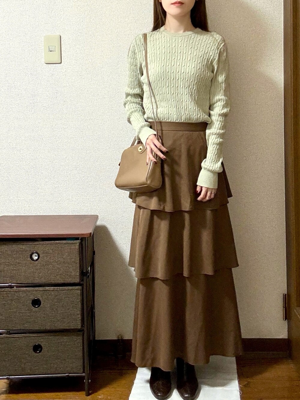 📷Instagramを始めました! 洋服や購入品になどを中心に載せていってみます!フォローよろしくお願いします🤲 Instagram→@suzu_wa24 ○tops:Ada. シンプルなケーブル編みニット 合わせやすいグリーンカラーにブラウンのスカートを合わせて柔らかい色味でまとめました! ○skirt: LOWRYS FARM 一気にコーデに華が出るフリルスカート カジュアル合わせでも可愛いけど、女性らしいコーデにはピッタリ♡