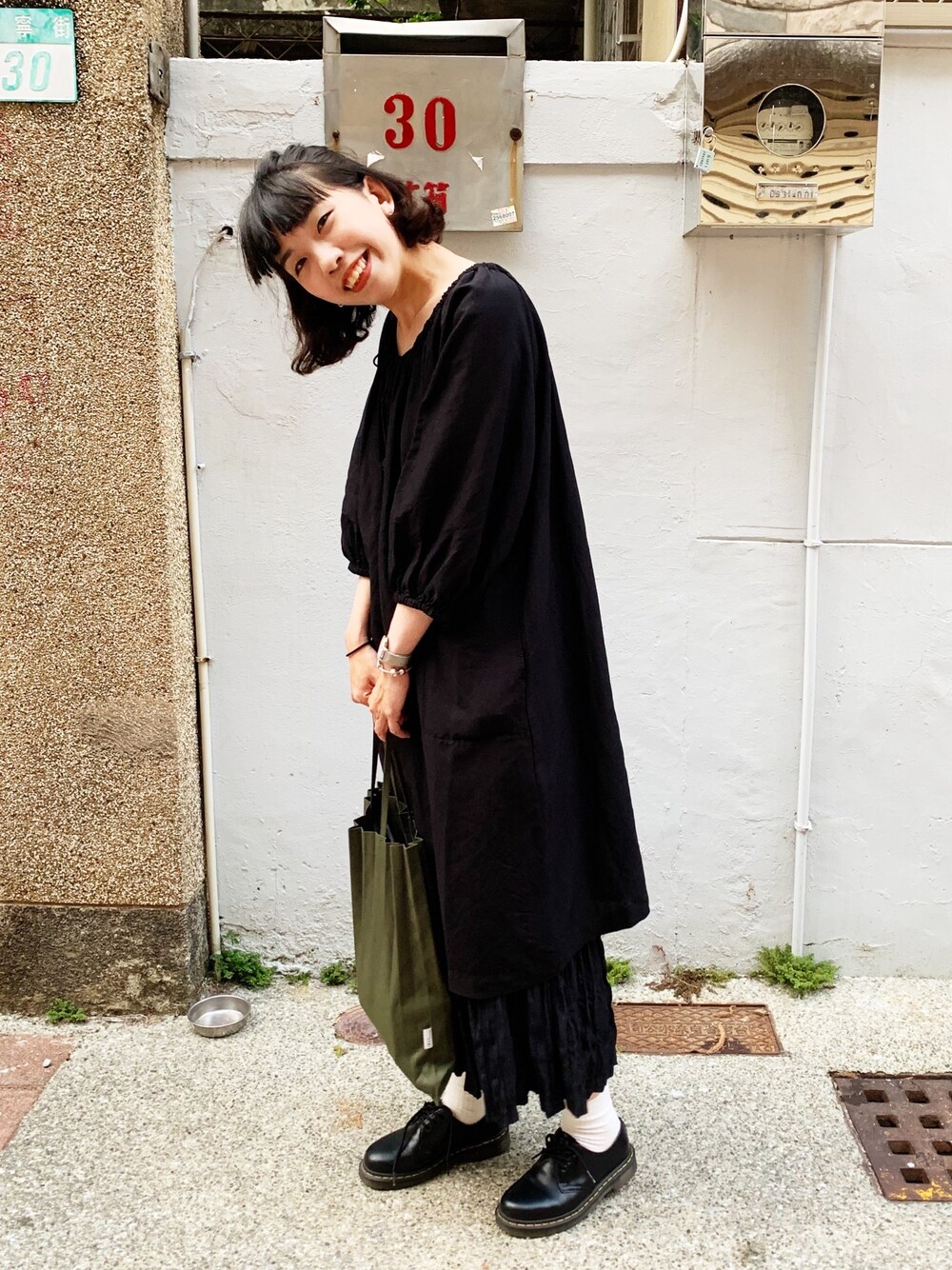 ユウ🐟のワンピース「リネンブレンドギャザーワンピース(7分袖)」を使ったコーディネート