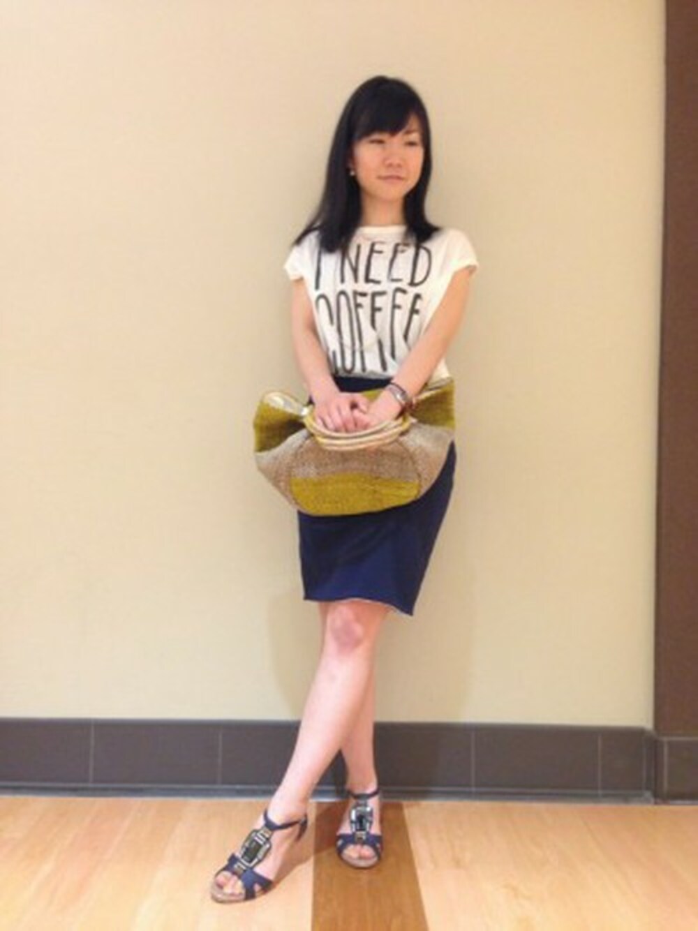 シンプルなコーディネートもビジューが華やかに仕上げてくれます♪