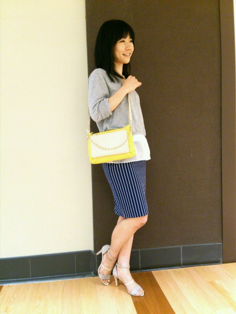落ち着いたカラーのお洋服に ビビットカラーのミニBAGがコーディネートの挿し色にとっても可愛いですよね♪ BAGは2WAYタイプですのでキレイめにもカジュアルにも大活躍な商品です