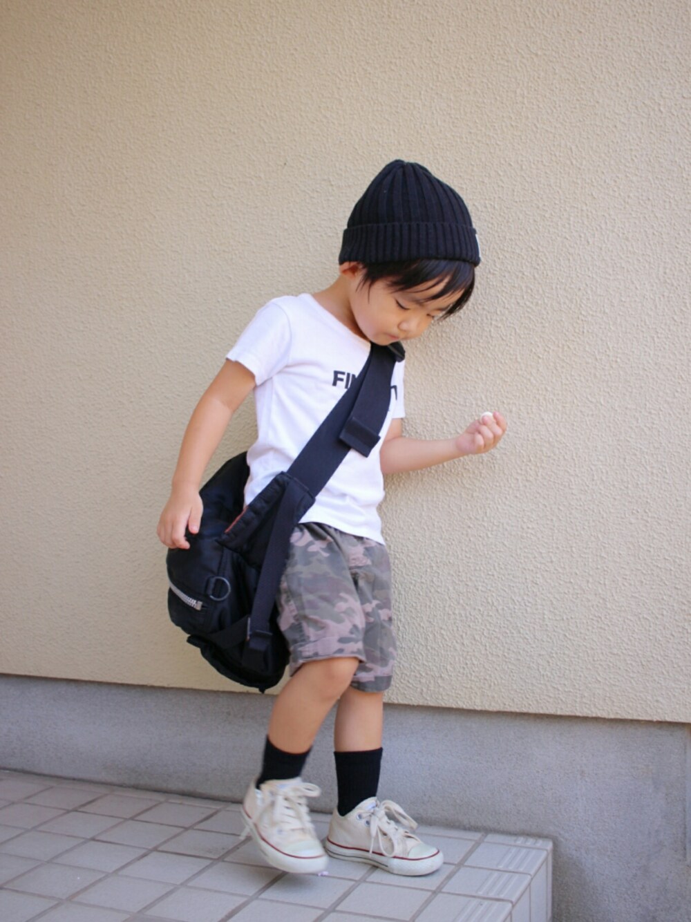 ご覧いただきありがとうございます😊 お友達と遊ぶので動きやすく、汗だくにも対応できるよう 白T×カモフラハーフパンツ×黒小物たち まだまだ夏感拭えませんが…一応 サンダル→靴下スニーカーになりました👟 また一緒に遊びたいと、毎日のように言うので…幼馴染の帰省が終わる前にもう一度🙏エンドレスダッシュ再び🏃🏃🏃 おやつにマック。 それぞれポテト、シェイク、フルーリーを選びシェアしてたのですが… 次男君とそーまは両手にポテトを確保しつつ、お兄ちゃんのアイスをもらうべく口をパクパク🍦長男って損しがち😂 我が家は生まれながらにして長男(32)がいたのでガッツリ次男体質に育ってます。。。 いつもいいね、save 、follow 、コメントありがとうございます😆⤴💓どれもとても嬉しいです😉👍🎶