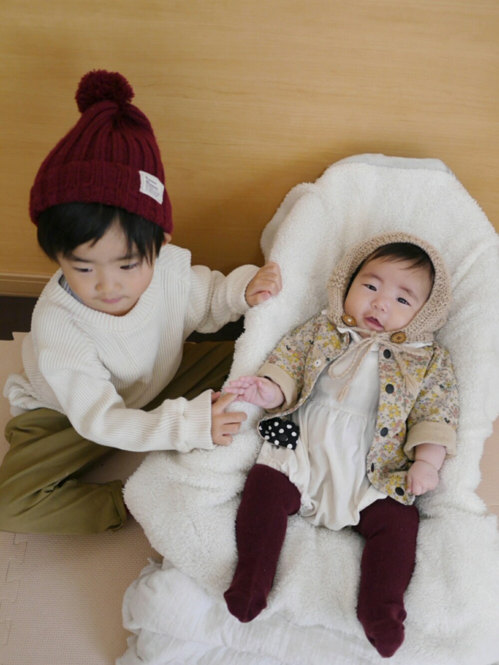 ご覧いただきありがとうございます😊 コメントはおろか、お返事やポチもできておらず😢ほーんとにごめんなさい🙇💦 一段落…と思ったらもう夜中😭 なんでこんなに時間がうまくつかえんのか💧コメ欄締めたくなかったとですが、申し訳なさすぎるので一旦締めます🙇 写真だけは溜まってく…😖 カラーリンク ホワイト×ベージュ×ボルドー 👦颯馬コーデ👦 ニット帽 DAISO スウェット ocean&ground パンツ devirock スニーカー converse 👶莉子コーデ👶 ボンネット @あむんじ屋 カーディガン Handmade ロンパース birthday タイツ birthday 務めていたときの可愛い後輩達が会いに来てくれた日♡ 平成生まれの可愛くキレイな子たちが、 もう仕事も辞めちゃったおばさんの家にわざわざ遊びに来てくれるなんて…ほんとにありがたいことです😭 颯馬も莉子もたくさん遊んでもらった一日でした♡ いつもいいね、save 、follow 、コメントありがとうございます😆⤴💓どれもとても嬉しいです😉👍🎶