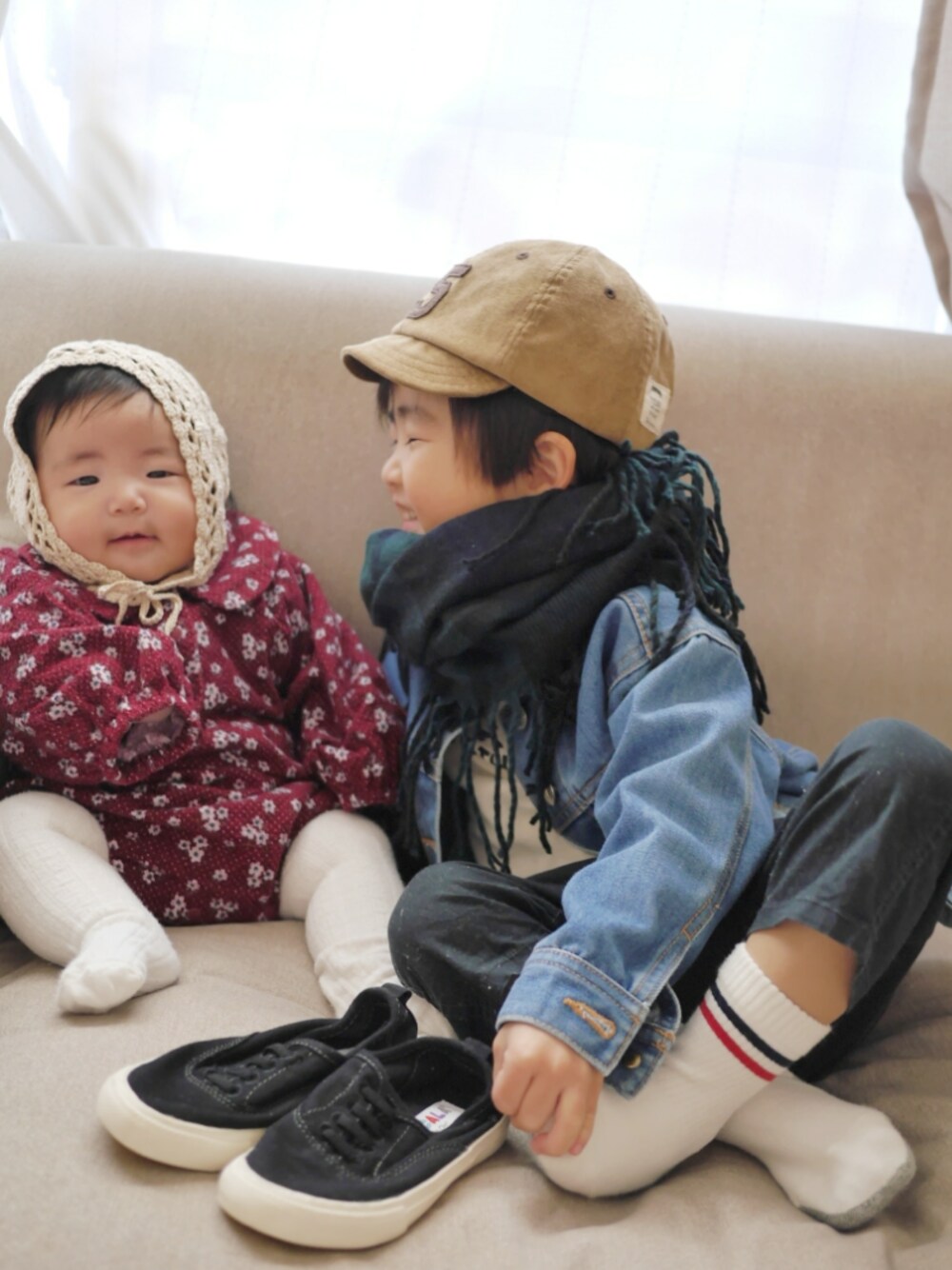 ご覧いただきありがとうございます😊 今日はKISA君の3歳のお誕生日🎂 おめでとーーーっ💕 出会った頃は(や、会ってないんだけど)まだおすわりだったキサくんが3歳。感慨深い😍 カッコいくて背も高くて…非の打ち所のないイケメンBOY✨ お洒落さんで、おしゃれなものに囲まれていて、これから益々輝いていくんだろうなぁ😍素敵な1年間になりますように! オソロアイテムでもないし、カラーも全然違うんだけど、雰囲気リンクで♡ 兄 つば浅キャップ×スヌード×デニジャケ 妹 花柄ロンパース×白タイツ 👦颯馬コーデ👦 キャップ HusHusH リングマフラー Right-on デニムジャケット BRANSHES ラグランロンT Birthday パンツ GLOBAL WORK 靴下 無印良品 スリッポン CIAOPANIC TYPY 👶莉子コーデ👶 バブーシュカ Handmade ロンパース Birthday タイツ next いつもいいね、save 、follow 、コメントありがとうございます😆⤴💓どれもとても嬉しいです😉👍🎶