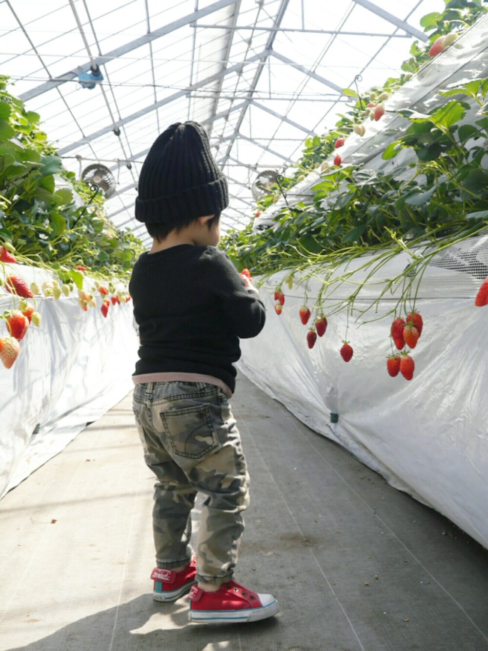 ご覧いただきありがとうございます(*˙˘˙)♡ 久しぶりのピンクじゃないコーデ✨ 先週末パパの先輩ファミリーと一緒におでかけしてきました🚗いちご狩り&動物公園&養豚場まで行って大充実の一日🍓 苺も動物も大好きな颯馬は終始ご機嫌✨苺の先端の一番いいとこだけ食べよる…コノヤロウ。パパとママは高いお金払って君の残骸の根元のとこばかり食べてました(╥ω╥`)カナシス いちご狩りには…絶対に黒のトップス☝これだけは譲れない😂それに苺カラーのスニーカーでコーデ組みました。モカ?っぽい色のリブタンクをチラ見せ✨ 本当は赤コン買おうかと思ってたんだけど玄関でのコンバース戦争を避けるためリーバイスにしました👟スリッポンっぽいやつ。かかとのペロンって出てるとこがつまめて最強に履かせやすい💓お互いストレスフリーです👍 いつもいいね、save 、follow 、コメントありがとうございます😆⤴💓どれもとても嬉しいです😉👍🎶