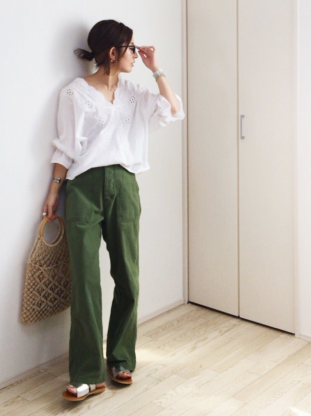 噂のGUのスカラップブラウスは プチプラに見えないクオリティでめっちゃ可愛い😭💕 ベタですがまずはベイカーパンツで合わせてみました❤️ 合わせると決めていたシルバーサンダルもお気に入り✨😍