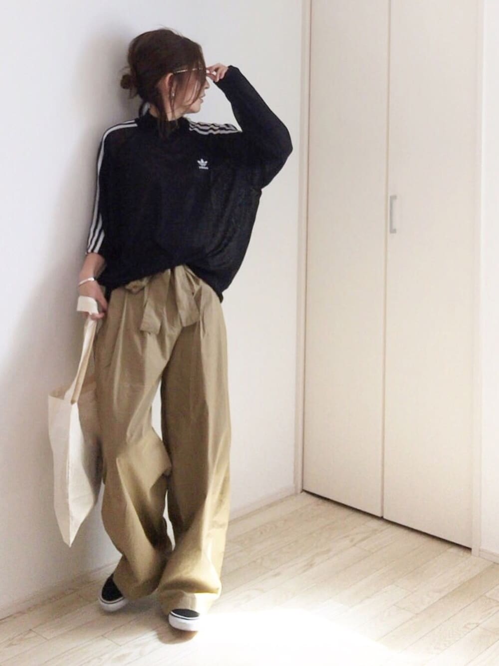 ずっと欲しかったadidasのトップス❤︎ 透け素材なので長袖でも全然暑くないです✨😄 二の腕隠したいので最高に嬉しい…💓 ゆるチノパンに合わせてお気に入りの組み合わせ♡
