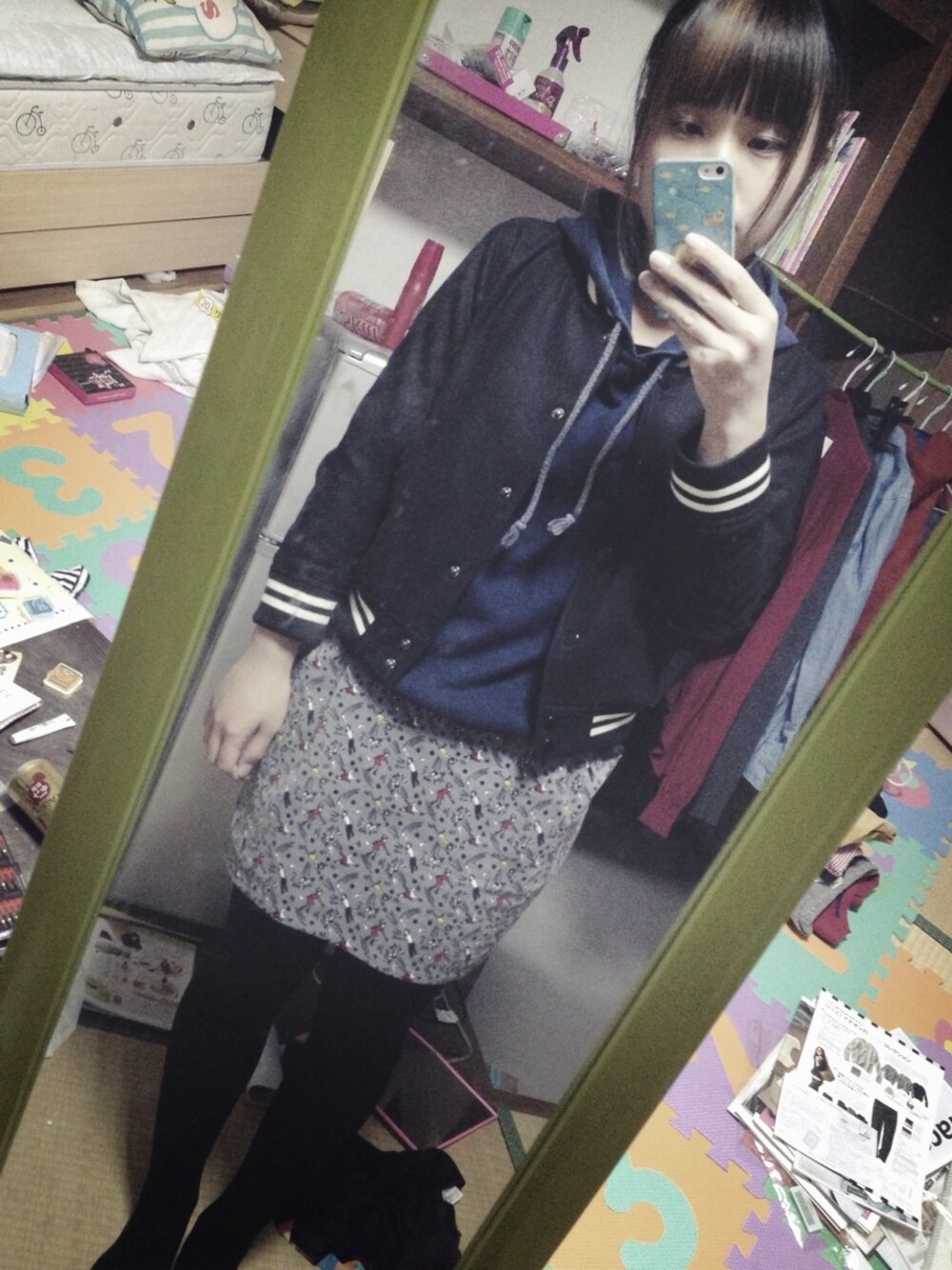 アウター/haco. パーカー/? スカート/didizizi です(=゚ω゚)ノ 全身暗い色でまとめてみました、