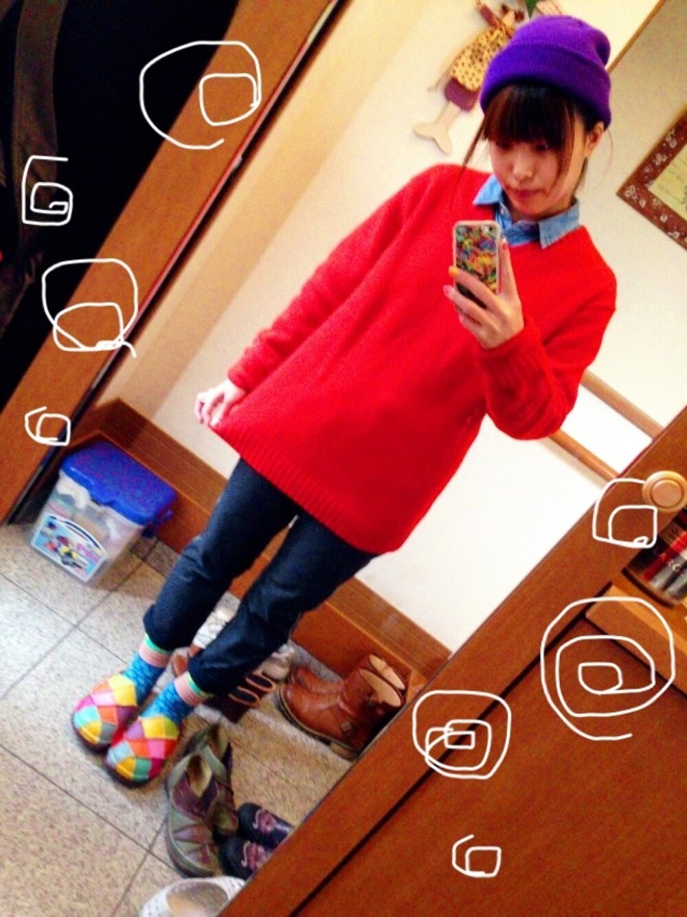 ニット/H&M ズボン/w closet LINEカメラを今更ダウンロードしたので ラクガキしてみました〜へたくそです