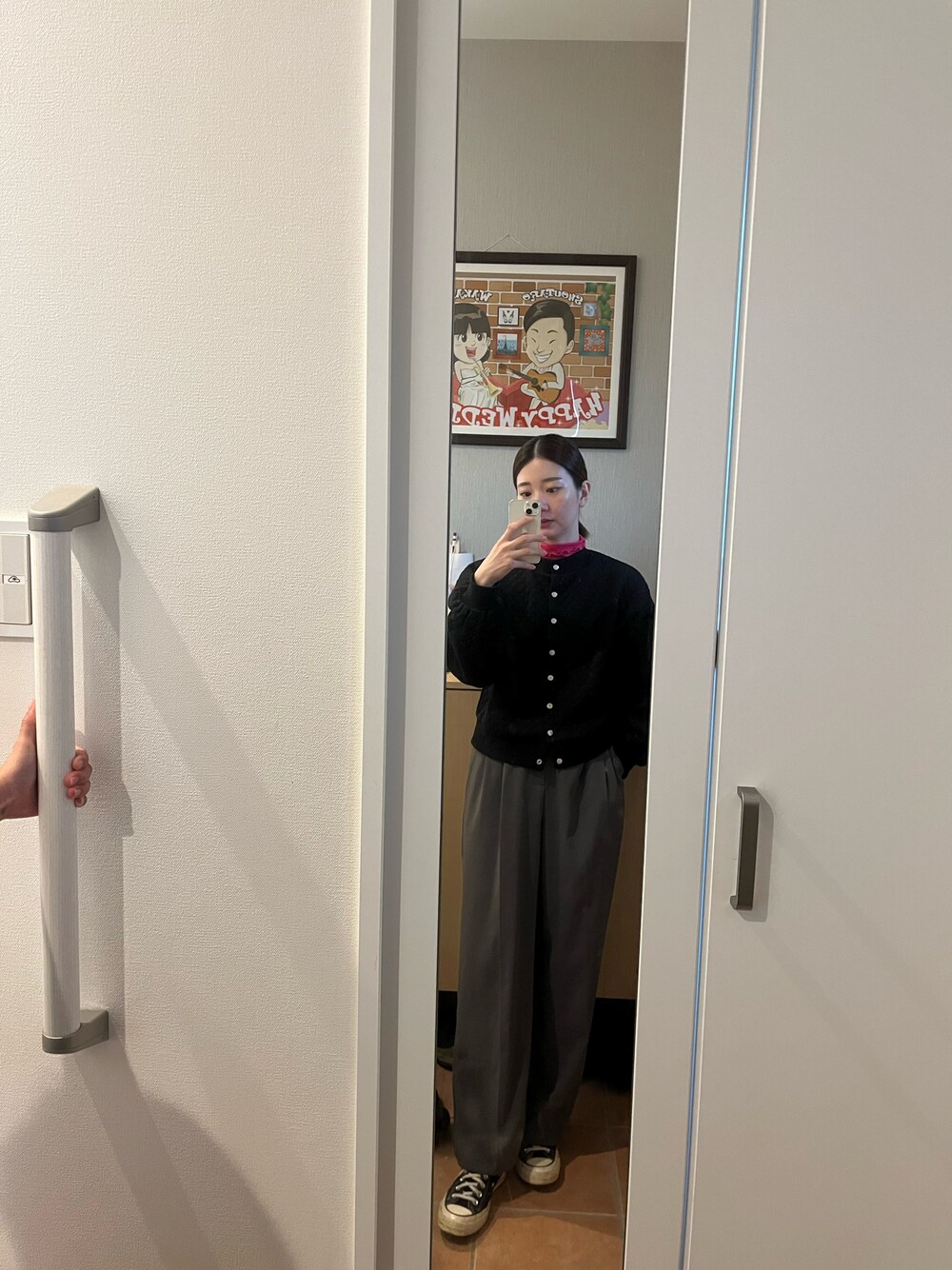 wakacchaのスラックス「[販売枚数7.7万枚突破][お気に入り登録数10.2万突破!][低身長/高身長/大きいサイズ有]ダブルタックカラーワイドパンツ」を使ったコーディネート