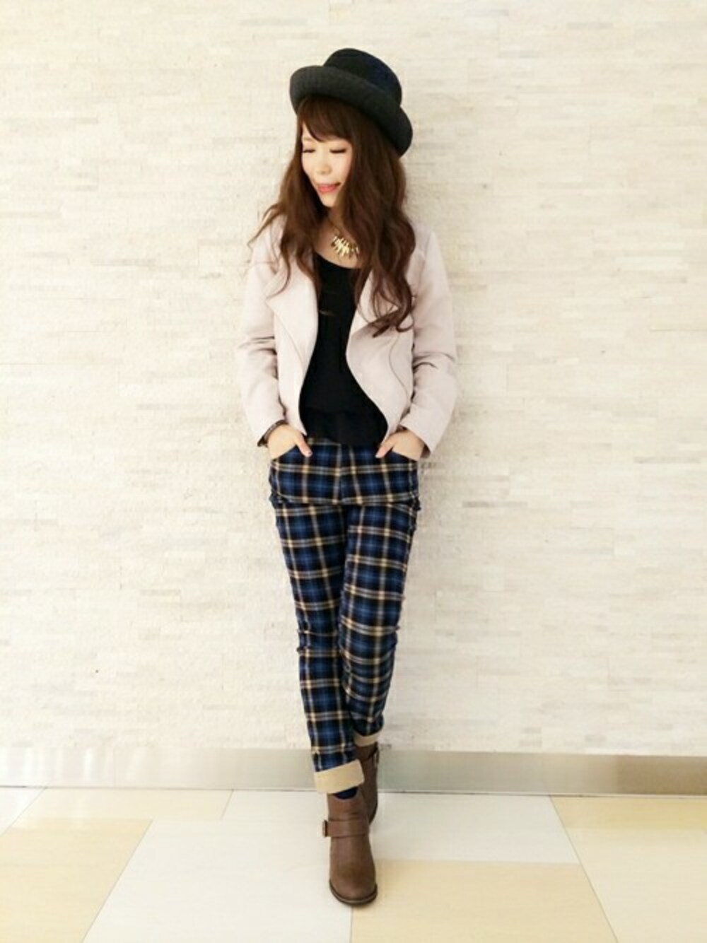 スキニー×ライダースジャケットで ちょっぴりかっこいめコーデ\(^o^)/ ライダースジャケットの丈は スキニーとの相性抜群♡ 足長効果ありです♪