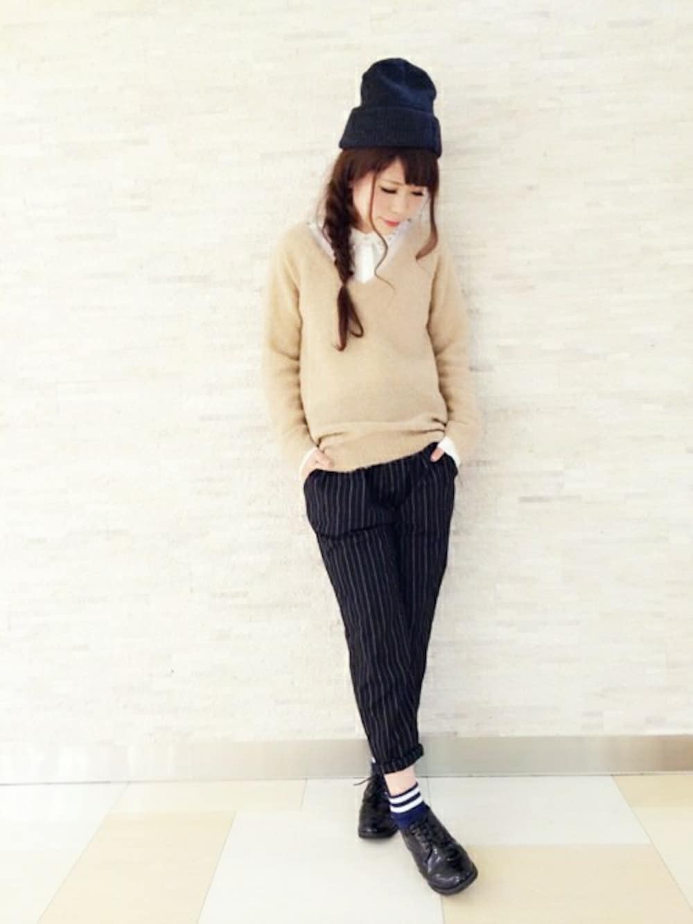 ストライプのパンツは大のお気に入り♡ シャツ×ニットでマニッシュコーデ\(^o^)/