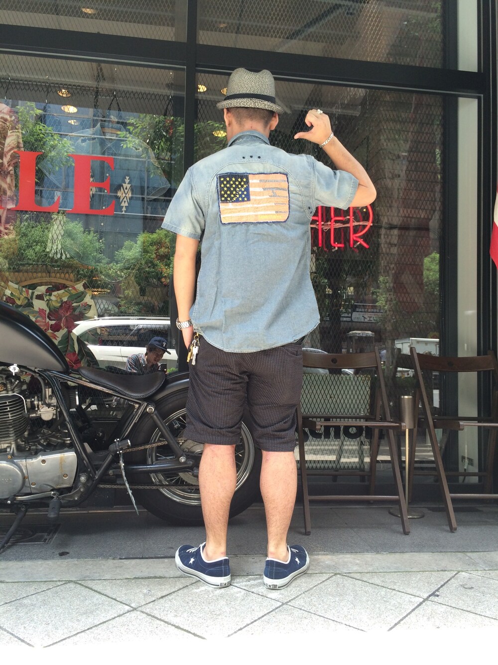 waki(Schott KOBE店)のシャツ/ブラウス「Schott(ショット)CHAMBRAY SHRT CUSOM FLAG」を使ったコーディネート