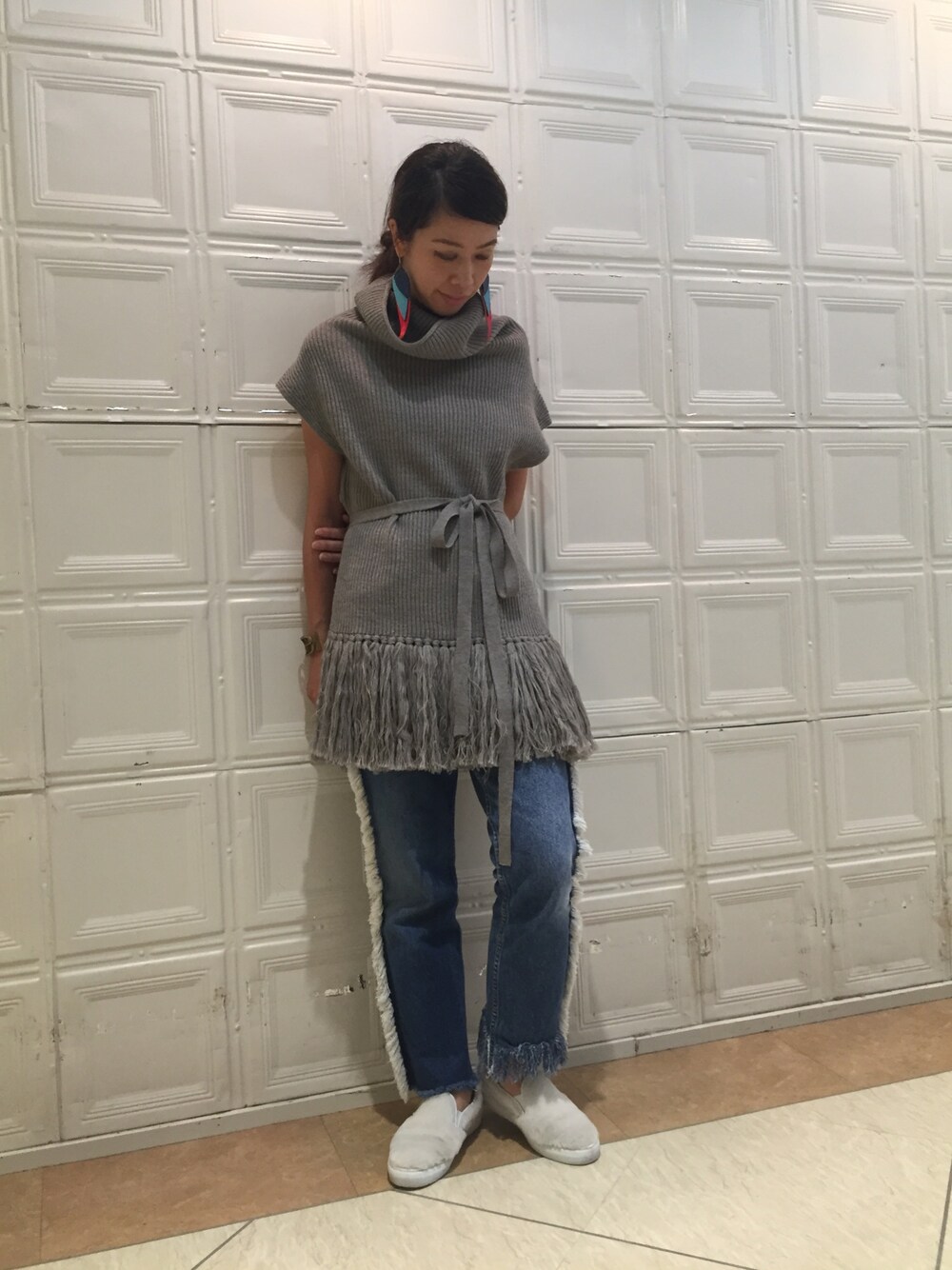 大振りなフリンジが大胆なRBSのニット☻77circaのリメイクデニムとも相性◎