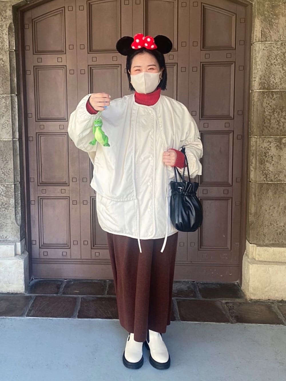 ディズニーコーデ❤️🤍🤎 白アウターかわいい