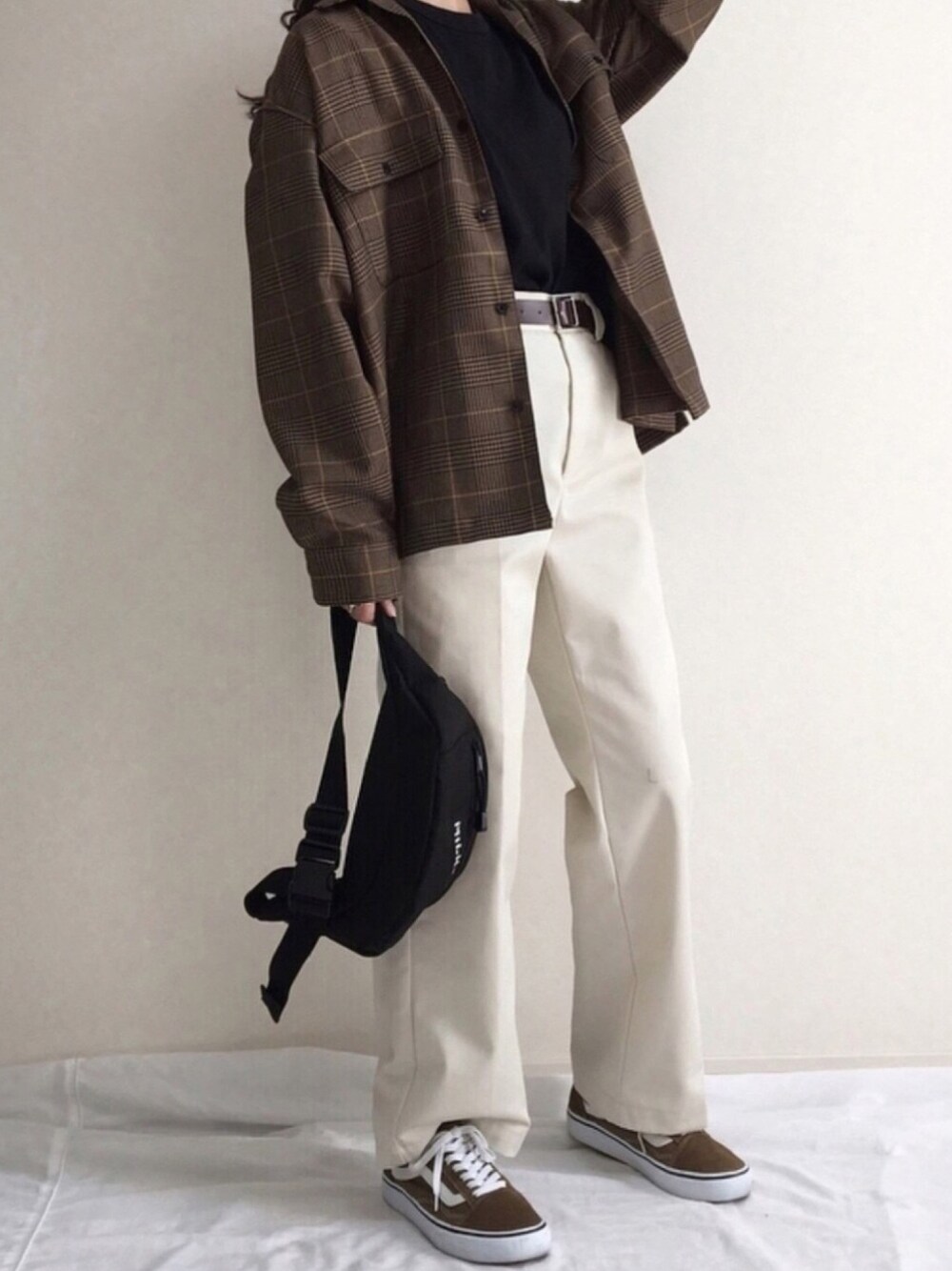 全身guコーデ グレンチェクのオープンカラーシャツ ブラウンに白パンツで 爽やか秋コーデ︎︎︎︎☺︎ Instagramでも紹介してます。 良かったら遊びに来て下さい🐯◎! Instagram→→@walk_marin