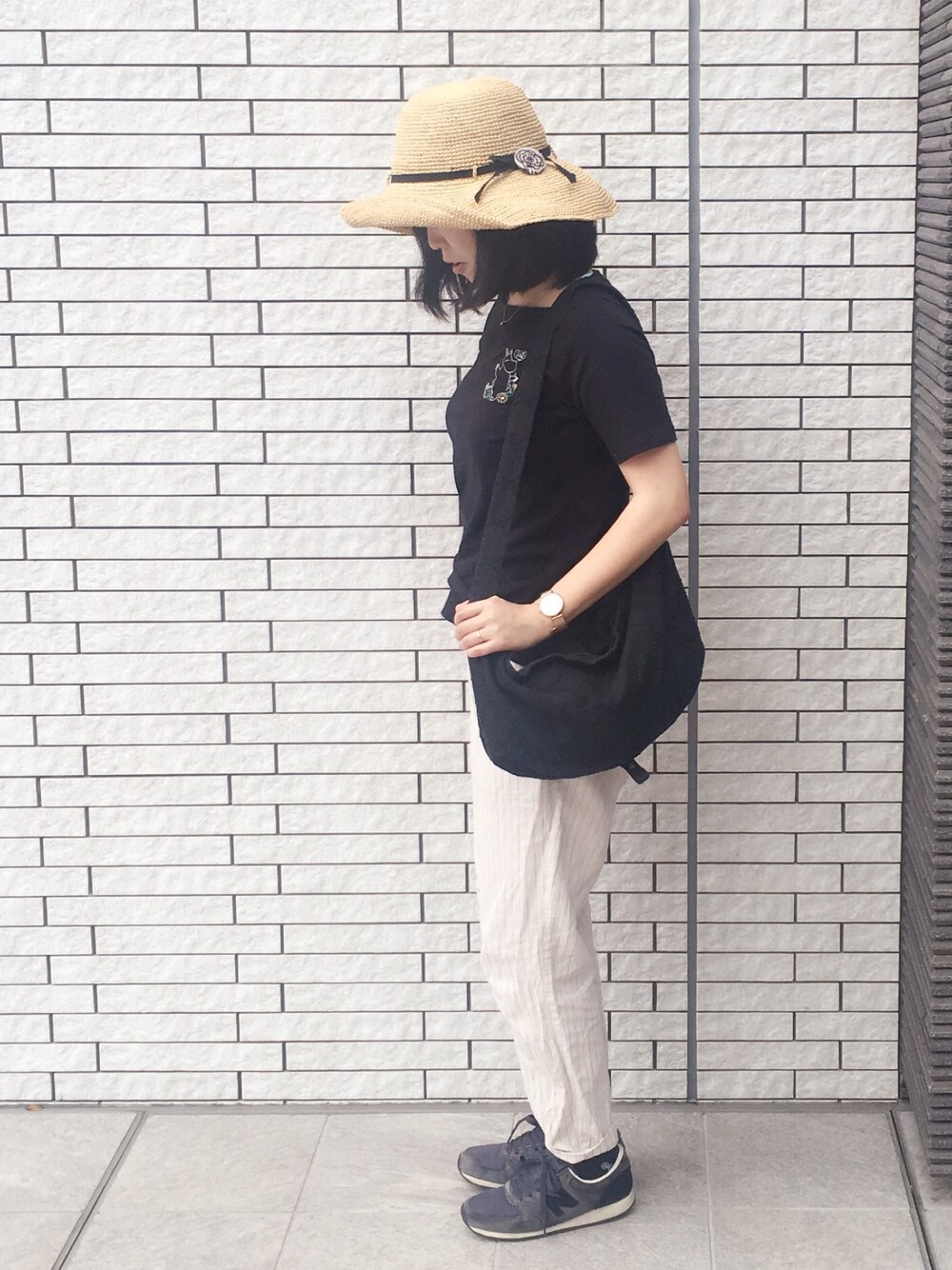 BBQへ行くための汚れても気にならないコーデ! 麦わら帽子にミナのブローチ付けました♡