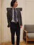 肌触りも良く柔らかい生地感が特徴のジャケットです。 シャツ+ネクタイで合わせていますが ニットやカットソーで合わせていただいても 使いやすいジャケットです。 コートもジャケットに合わせても ジャケットが下から出にくい丈感ですが 長すぎないので座る際にも 邪魔になりにくくオススメです。 機能性の高いアイテムとなっているので オススメのアウターです。